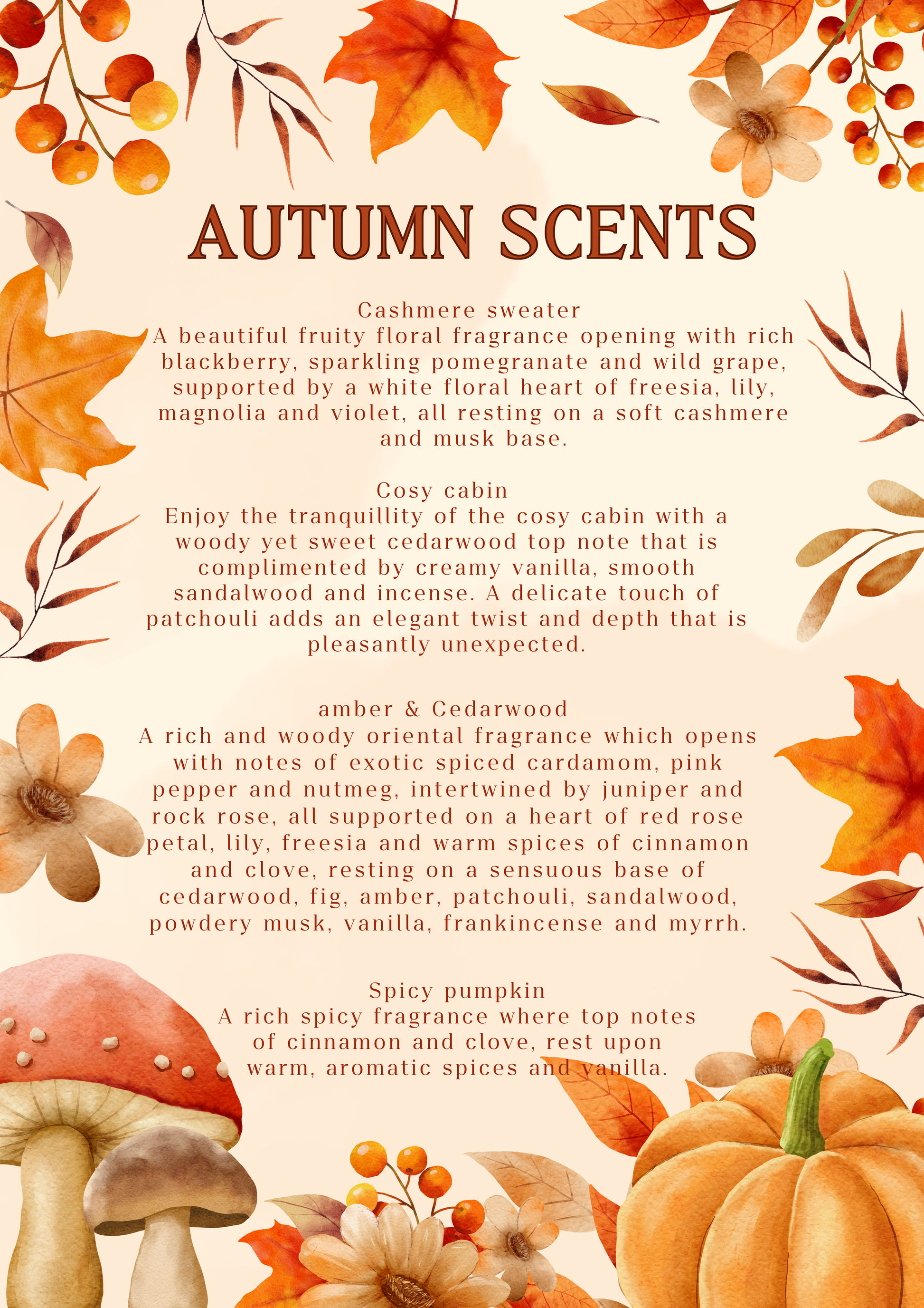 Experience the warm essence of autumn with our Autumn Scented sizzlers. Each 50g bag is filled with highly fragranced scents, perfect for creating a cozy atmosphere. Embrace the season with our autumn collection.